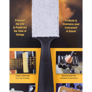 Cleaning Pad, Ideal for Hardware and Body on Any Acoustic, Electric, Mixer, Pedal Instrument, and More, Innovative Patented Design, Premium Washable Microfiber Pad, Cleans Top and Bottom Strings in Seconds lint-free, 100% pad quickly cleans dust, dirt and fingerprints on instruments and hard-to-reach areas, you can use the soft natural fibers as a cleaning brush to remove dust buildup on the body, bridge, nuts, machinery, head and everything else, ergonomic design.