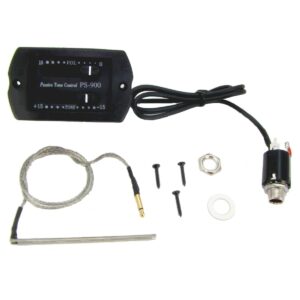 Pastilla para guitarra acústica o clásica, preamp pasivo, control de volumen, inmejorable sonido con gran calidad natural, ecualizador de 2 bandas (volumen, tono), frecuencia de 20 Hz – 20 kHz, no requiere pilas, dimensiones: 36 x 62 mm.