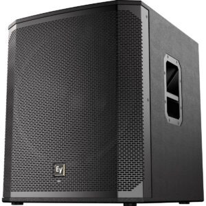 Subwoofer activo para aplicaciones portátiles y de instalación, woofer EVS-18L de 18” pulgadas, amplificador de potencia Clase D de alta eficiencia (hasta 1200 watts) con QuickSmartDSP integrado, configuración sencilla por medio de cuatro pre-ajustes (Music, Live, Speech, Club), ecualizador de 3 bandas, cinco pre-ajustes de usuario programables (ajustes Store y Recall), monitoreo visual de estado de limitador, control de nivel de entrada y medidores y control de volumen principal, gabinete de compuesto de madera contrachapada de 15 mm, rango de frecuencia (-10 dB): 40 Hz – 145 Hz, respuesta de frecuencia (-3 dB): 47 Hz – 105 Hz, rejilla de acero de 18 AWG con pintura en polvo, SPL máximo de 129 dB, consumo de energía: 100 – 240 V~, 50 – 60 Hz, 1.8A, polo de montaje en poste M20, dimensiones: 574 x 600 x 507 mm, peso: 29 kg.