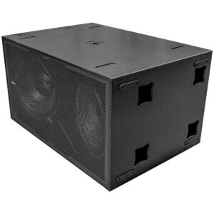 Bafle activo para lineal, potencia AES: 2800 watts, respuesta de frecuencia (-6dB cámara anecróica): 32 Hz – 300 Hz, distorsión media H2: <1.8% a 1 watt, distorsión media H3: < 0.3% a 1 watt, driver LF: Driver Beyma personalizado de ferrita con bobina móvil de 4” pulgadas, conector de E/S de señal: entrada XLR hembra, salidaXLR macho, conector de E/S de potencia: Powercon NAC3MPA / NAC3MPB, gabinete CNCde abedul ruso de alta densidad, terminado con pintura en spray amigable con el medio ambiente, dimensiones: 984 × 650 × 760 mm, peso: 95 kg.