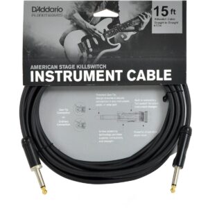 Cable para instrumento, serie American Stage Killswitch, protección ”kill switch” para cambios silenciosos de instrumento, diseño de geo-punta patentada para conexión segura, tecnología de soldadura para conexión superior y liberación de tensión de gran alcance, abrazadera de cable estilo ”Chuck” para mejorar liberación de tensión, longitud: 15 pies (4.57 metros).