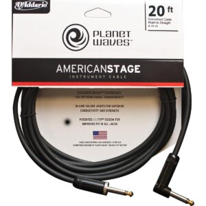 Instrument Cable, American Stage Series, Length: 6096 meters (20 feet), Designed to reproduce the natural sound of your instrument with zero interference, Exclusive patented Geo-Tip design improves fit on all jacks, Solder joints Inline for better conductivity and superior strength, Liechtenstein-made Neutrik plugs, built to D'Addario's patented design.