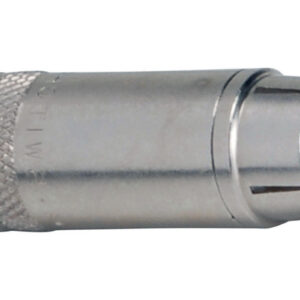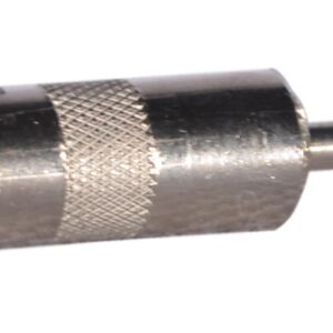 2-conductor RCA-style straight connector, solid plug, up to 0.290” (7.366mm) diameter wire, center solder cup, long handle and cable clamp, nickel handle, nickel connector.