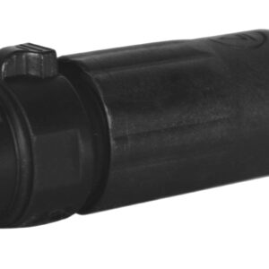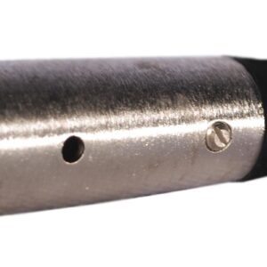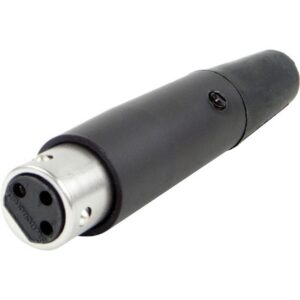 Silver 3-pin female XLR connector and black plastic cover (silver head).