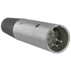 Silver 7-pin male XLR connector, nickel-plated finish.