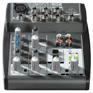 Mezcladora analógica premium de 5 entradas y 2 buses, preamplificadores Xenyx con alimentación phantom, ruido ultra bajo, alto headroom, ecualizadores británicos de 2 bandas para un sonido cálido y musical, Main Mix, CD/Tape estéreo y salida separada de audífonos, Entrada CD/Tape asignable a salida de audífonos o Main Mix, dimensiones: 47 x 134 x 177 mm, peso: 1.2 kg.