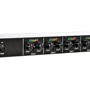 5-Zone Layout Mixer, Input Connectors: 4 XLR-F Balanced, Output Connectors: 10 XLR-M Balanced, Input Impedance: 47K Ohms, Output Impedance: 200 Ohms, Max Input Level: +20 balanced dBu., maximum output level: +24 dBu balanced.