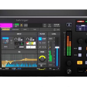 Mezcladora digital de 3 unidades de rack, 40 entradas y 25 buses, 16 preamps MIDAS programables, interface USB 2.0 de 32×32, apps para iPad/iPhone para operación remota profesional, 8 salidas XLR más 6 entradas/salidas adicionales, conector de audífonos y una sección mic talkback con entrada XLR para micrófono, TFT de color de alta resolución de 5” pulgadas con visibilidad durante el día para facilitar los ajustes de los parámetros del flujo de trabajo, MCR principal, 6 buses de matriz y 16 buses de mezcla con insertos, ecualizadores paramétricos de 6 bandas y procesamiento dinámico completo además de 8 grupos DCA y 6 mute, virtual FX rack con 8 slots FX true-stereo que incluyen simulaciones de gama alta como Lexicon 480L y PCM70, EMT250 y Quantec QRS, DSP de punto flotante de 40 bits que ofrece rango dinámico ilimitado sin sobrecarga interna y latencia total cercana acero (0.8 ms), potente gestión de escenas para manejar cómodamente producciones complejas, puertos AES50 de 48 canales Digital Snake Ready con capacidad de red SuperMAC de Klark Teknik para jitter y latencia ultra baja, conector USB tipo A que proporciona almacenamiento de archivos y grabaciones estéreo sin comprimir, además de preajustes de presentación y actualizaciones del sistema, conectividad ULTRANET para sistema de monitoreo personal P-16 de Behringer, control remoto en red por medio de Ethernet para configuraciones de show con editor de software en pantalla, puerto de expansión integrado para tarjetas de interfaz de audio o puentes de redes digitales, MIDI In/Out para la recuperación remota de escenas o el control de otros equipos MIDI, futuras actualizaciones de firmware que incluyen nuevos plugins de FX, descargables desde la página de behringer.com, dimensiones: 132 x 483 x 287 mm, peso: 6.5 kg.