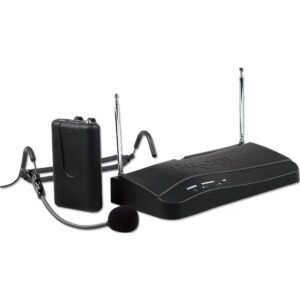 Micrófono inalámbrico Proel. Modelo: RM200. Receptor de frecuencia fija. Indicador de pico de audio. Indicadores de diversidad. Control de volumen de salida Salida Jack, XLR balanceada. Incluye transmisor VHF, cable y bolsa de transporte.