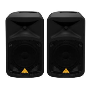 Sistema de altavoz portátil ultracompacto de 500 watts, ideal para fiestas, escuelas, presentaciones corporativas y educativas, seminarios, , aerobics, subastadores, músicos callejeros, guías de turistas, bodas, entre otros, enorme potencia e increíble rendimiento sonido, woofer extremadamente potente de 8” pulgadas con driver de compresión de diafragma de aluminio de 1.35” pulgadas, puedes conectar tu iPhone, iPod, iPad o cualquier otro reproductor mp3 por medio de Bluetooth, ”Wireless Ready” para sistemas de microfonía inalámbrica digital de alta calidad de Behringer (no incluido), procesador FX Klark Teknik de alta calidad con 100 preajustes incluyendo reverb, chorus, flanger, delay, pitch shifter y varios multiefectos, revolucionario sistema FBQ que revela al instante frecuencias críticas para una fácil eliminación de la retroalimentación, sección de mezcladora de 6 canales con 2 canales mono y 2 estéreo, 2 preamplificadores de micrófono de alta calidad con alimentación phantom conmutable de +48V para micrófonos de condensador, ecualizador de 2 bandas extremadamente musical, LED conmutable de Pad y Clip en todos los canales mono, ecualizador gráfico estéreo de 5 bandas que permite una corrección precisa de la frecuencia de las salidas principales, incluye un micrófono Behringer XM1800S, clip y cable, cuenta con un compartimento de almacenamiento para micrófonos, cables y accesorios, fuente de alimentación conmutada interna ”Planet Earth” para máxima flexibilidad (100-240V~), audio sin ruido, respuesta transitoria superior y bajo consumo de energía, dimensiones: 672 x 520 x 304 mm, peso: 20.3 kg.