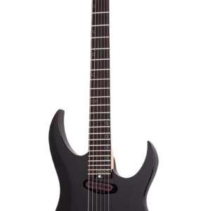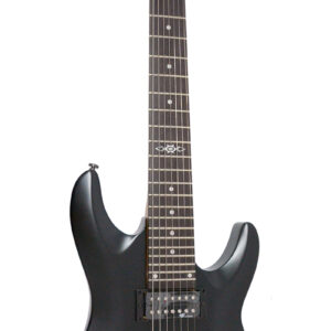 Guitarra eléctrica sólida de 7 cuerdas, cuerpo de tilo, tapa arqueada, brazo de maple, diapasón de palo de rosa, incrustaciones: puntos de pearloid con cruz gótica en el traste 12, escala: 26.5” (673 mm), 24 trastes, radio del diapasón: 16” (406 mm), forma del brazo: C delgado, espesor en el primer traste: .787” (20 mm) y en el traste 12: .866” (22 mm), cejuela de grafito de 1.889” (48 mm) de ancho, alma ajustable de 2 vías con tuerca Allen de 5/32” (4 mm), pastilla del puente: Schecter Diamond Plus, pastilla del brazo: Schecter Diamond Plus, controles: 1 volumen, 1 tono y selector de 3 posiciones, hardware cromado negro, puente Tune-O-Matic con cuerda a través del cuerpo, maquinaria Schecter, perillas de metal moleteado con tornillo de ajuste, construcción bolt-on, incluye funda.