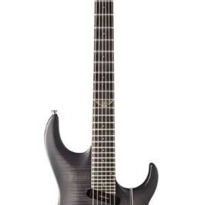 Guitarra eléctrica sólida, cuerpo de fresno de pantano, tapa burl plana, hardware negro cromado, construcción Set-Neck con Ultra Access, puente Floyd Rose 1500 Series, maquinaria Schecter, brazo C ultra delgado de maple y nogal multi capa con varillas de refuerzo de fibra de carbono, diapasón de ébano, incrustaciones de Pearloid Offset/Puntos inversos, escala: 25.5” (648 mm), 24 trastes X-Jumbo, cejuela Graph Tech XL Black Tusq de 1.625” (41.3 mm) de ancho, alma ajustable de 2 vías con tuerca Allen de 5/32”, un volumen, un tono, switch de 3 posiciones (pastilla), switch sustainiac de 2 posiciones (On-Off), switch de modo sustainiac de 3 posiciones (Fundamental-Mix-Harmonic), pastilla del puente: Schecter Diamond Decimator, pastilla del brazo: Schecter Diamond Decimator, perillas de metal moleteado con tornillo de ajuste.