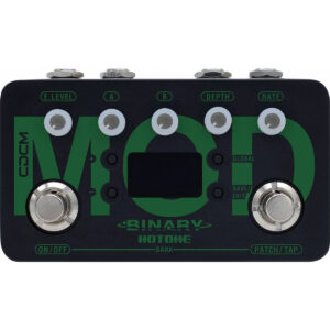 Pedal de modulación, fácil de usar, con tap tempo, utiliza la tecnología XTOMP de nueva generación, avanzado sistema de modelado CDCM que garantiza una experiencia de realista al tocar, plataforma con alimentación DSP, conversión A/D/A de 24 bits, 24 efectos de modulación de alta calidad que incluyen clásicos basados en CDCM y originales de Hotone, función Tap Tempo con Tap Divide, E/S estéreo, jack conector EXP para controlar pedal de expresión, conector USB para actualización de firmware, 10 pre ajustes (2 bancos x 5 patches), pantalla OLED incorporada con pantalla clara, 5 perillas transparentes con LED, fuente de alimentación de CC de 9V.