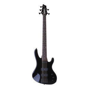 Bajo eléctrico de 5 cuerdas, cuerpo de tilo, hardware negro, tapa arqueada, construcción 6 bolt-on, puente Diamond Bass, maquinaria Schecter, brazo C delgado de maple, diapasón de palo de rosa, incrustaciones Pearloid Semi-Gótico, escala: 35” (889 mm), 24 trastes X-Jumbo, cejuela Graph Tech XL Black Tusq de 1.771” (45 mm) de ancho, alma ajustable de 2 vías con tuerca Allen de 5/32” (4 mm), un volumen, pastilla del puente: Schecter Diamond Bass, pastilla del brazo: Schecter Diamond Bas, perillas de metal moleteado con tornillo de ajuste.