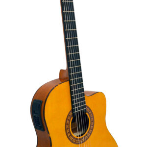 Electro acoustic guitar with classic body, slim edge, spruce top, mahogany back, sides and neck, rosewood fingerboard, sonokeling bridge, natural color, KLT-34 active preamp with digital tuner, 4-band equalizer, volume and phase, nylon D'Addario strings.