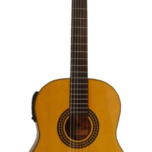 Electro-acoustic guitar with classic body, undercut, mahogany neck, spruce top, ovankol back and sides, rosewood fingerboard, sonokeling bridge, natural color, KLT-34 active preamp with digital tuner, 4-band equalizer, volume and phase, D'Addario nylon strings.