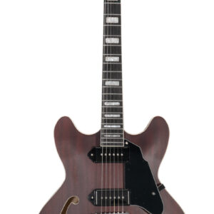 Guitarra eléctrica Mars Hollowbody 339 Satin con cuerpo de contrachapado de caoba y acabado en chapa de caoba. Mástil de caoba moderno tipo C y diapasón de palisandro para una ejecución cómoda. Equipado con 2 humbuckers cerámicos, puente stop bar tail y controles de volumen y tono. Disponible en colores violin sunburst (VIS) y tobaco sunburst (TOS), combinando potencia y elegancia en un diseño robusto.