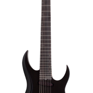 Guitarra eléctrica sólida de 7 cuerdas, cuerpo de tilo, tapa arqueada, brazo de maple, diapasón de palo de rosa, incrustaciones: puntos de pearloid con cruz gótica en el traste 12, escala: 26.5” (673 mm), 24 trastes, radio del diapasón: 16” (406 mm), forma del brazo: C delgado, espesor en el primer traste: .787” (20 mm) y en el traste 12: .866” (22 mm), cejuela de grafito de 1.889” (48 mm) de ancho, alma ajustable de 2 vías con tuerca Allen de 5/32” (4 mm), pastilla del puente: Schecter Diamond Plus, pastilla del brazo: Schecter Diamond Plus, controles: 1 volumen, 1 tono y selector de 3 posiciones, hardware cromado negro, puente Tune-O-Matic con cuerda a través del cuerpo, maquinaria Schecter, perillas de metal moleteado con tornillo de ajuste, construcción bolt-on, incluye funda.