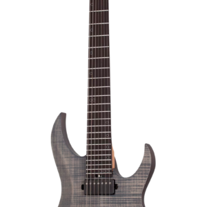 Guitarra eléctrica sólida de 7 cuerdas, cuerpo de tilo, tapa plana con borde biselado, brazo C delgado de maple, diapasón de palo de rosa, incrustaciones: puntos de 4 mm, escala 26.5” (673 mm), 24 trastes estrechos x-jumbo, radio del diapasón: 16” (406 mm), cejuela de grafito de 1.889” (48 mm) de ancho, alma de 2 vías ajustable con tuerca Allen de 5/32” (4 mm), pastilla del puente: Schecter Diamond Plus, pastilla del brazo: Schecter Diamond Plus, un volumen y un tono, selector de 3 posiciones, hardware cromado, puente Tune-O-Matic con string thru body, maquinaria Schecter, perillas de metal moleteado con tornillo de ajuste, construcción bolt-on.
