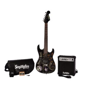 El paquete de guitarra eléctrica Smithfire incluye todo lo necesario para empezar a tocar; con un cuerpo de basswood, brazo de maple y diapasón de rosewood, ofrece una excelente combinación de ligereza y durabilidad. Equipado con 3 pickups single coil y un selector de 5 posiciones, te brinda un sonido claro y potente ideal para rock clásico y metal. Viene con un combo de 10 watts con distorsión, cable, tahalí, afinador, plumillas y llave de ajuste. Perfecto tanto para guitarristas principiantes como profesionales que buscan calidad y portabilidad a un precio accesible.