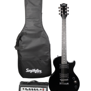 Paquete de guitarra eléctrica, cuerpo de basswood, brazo de maple, diapasón de rosewood, 2 humbuckers, 1 vol y 1 tono, puente stop-tail, selector de 3 pasos, 22 trastes, incluye combo Smithfire SF-10 de 10 watts con distorsionador, tahalí, funda de nylon, afinador de silbato, cable y 3 plumillas.