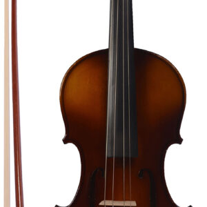 Violín de 4/4, tapa de abeto sólido (laminado), aros y fondo de maple sólido (laminado), brazo de maple sólido, diapasón, barbada y clavijas de hardwood negro, cordal metálico con 4 tornillos de ajuste fino, filetes incrustados, incluye arco de pernambuco con crin de caballo, puente de maple y estuche.