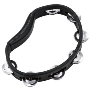 Headliner series tambourine, 2 rows of stainless steel cymbals, extra wide grip, bright and cutting sound, durable ABS frame, 1 row of stainless steel cymbals, diameter: 8” inches, black color.