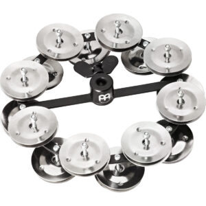 Mountable Meinl tambourine for drummer. Model. HTHH2BK. Designed to be mounted on the stem of the Hi-Hat. Its compact size makes it very practical since it does not get in the way to play.