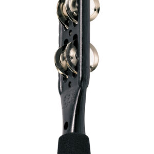 Tambourine stick, brass jingles, warm and cutting sound, padded grip, güiro-style playing surface, made of ABS and solid brass cymbals.