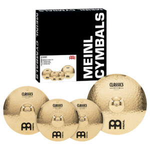 Classics Custom cymbal set including 14” backlash, 16” medium crash and 20” medium ride, made from B10 bronze alloy that contains more tin than the standard Classic series, high-tech computerized manufacturing, finished bright, bright timbre, rich and musical character, medium-high tone, medium volume, medium sustain.