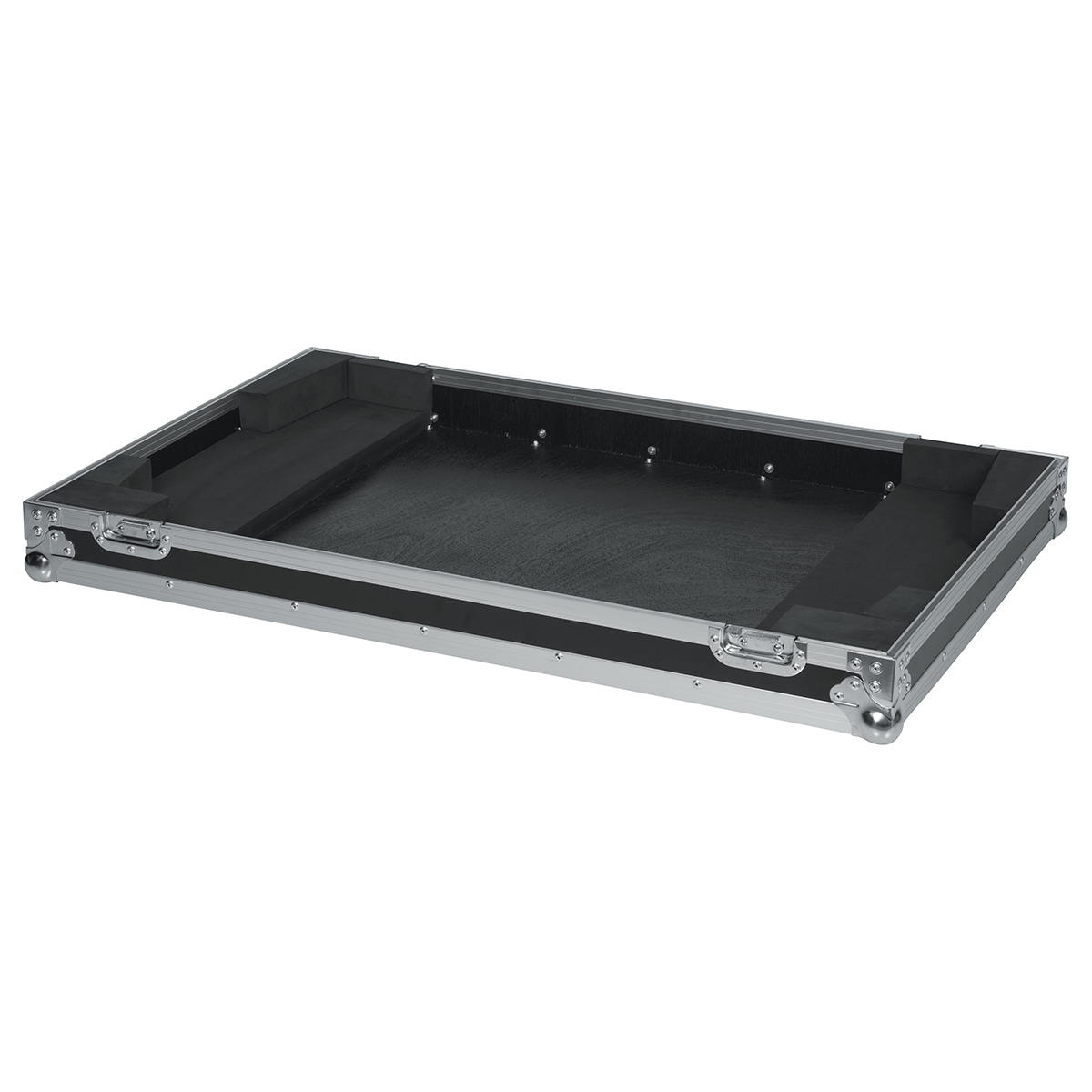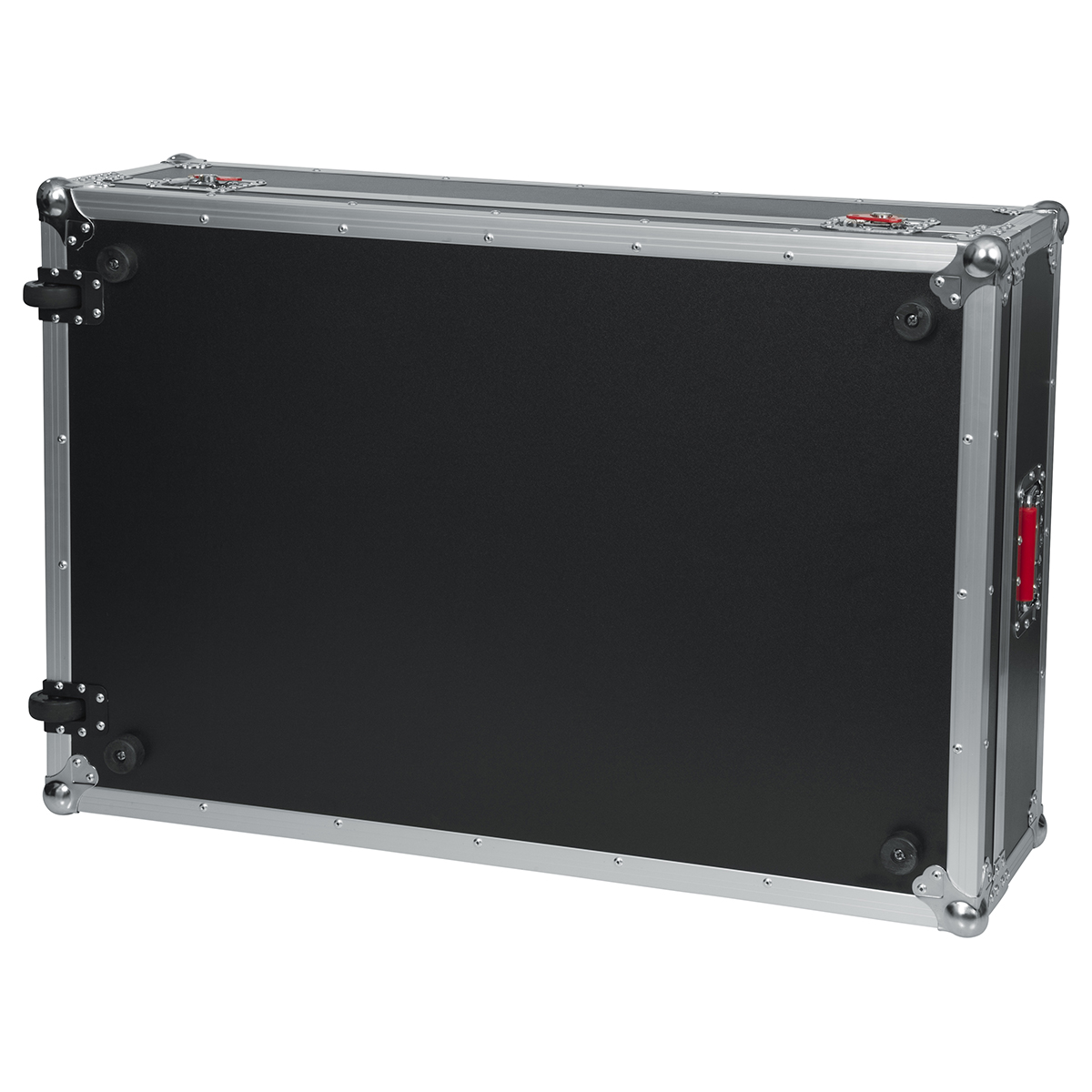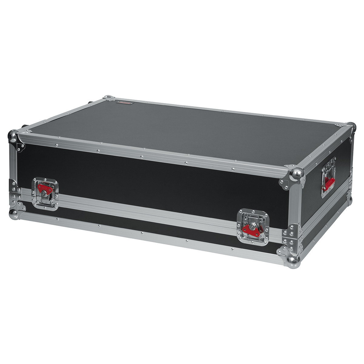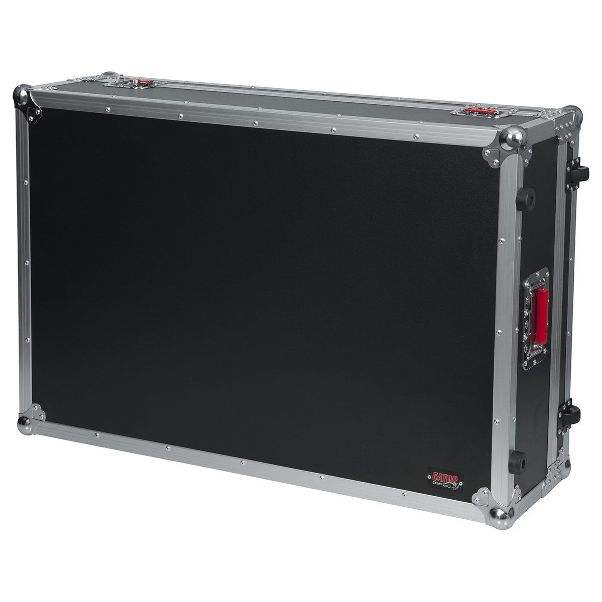Estuche ATA para mezcladora X32 de gran formato de Behringer, fabricado con madera contrachapada de 9 mm con exterior protector laminado, interior laminado negro con bloques de espuma EVA para protección que dejan espacio para la parte del ventilador en la parte inferior, hardware de grado comercial, cierres bloqueables y cierre grande rojo Signature Gator, manijas de goma con resorte, esquinas protectoras de bola, ruedas incorporadas y asa de remolque.