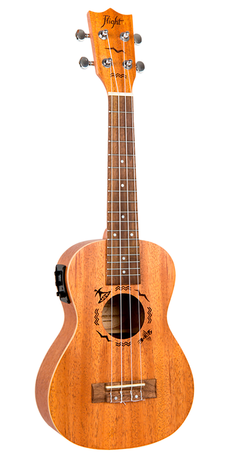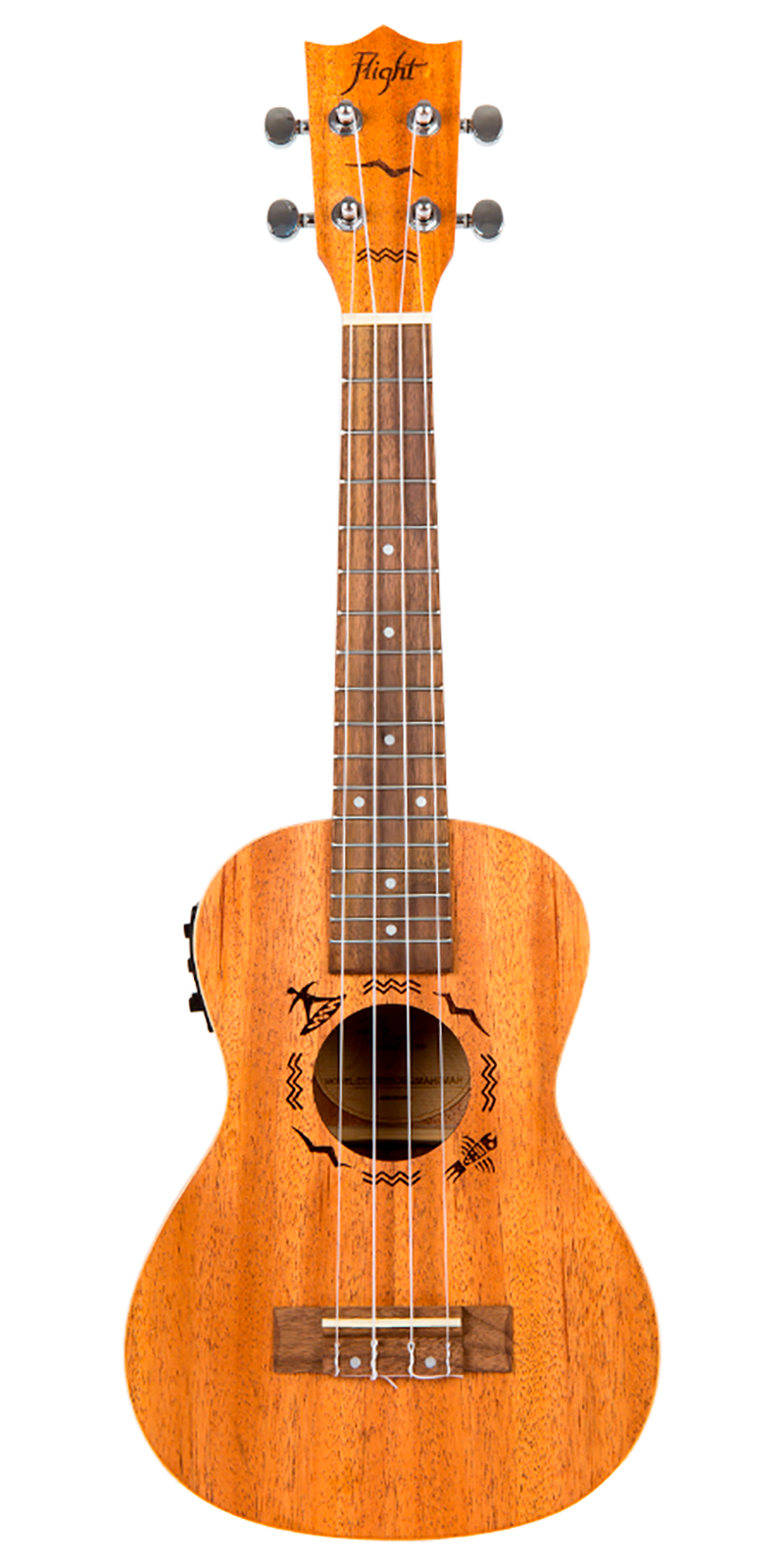 Hermoso y fácil de afinar. El diseño del cabezal es una parte integral de nuestra identidad. Todos los ukeleles Flight cuentan con un cabezal diseñado cuidadosamente equipado con afinadores engranados que siempre te mantendrán afinado.