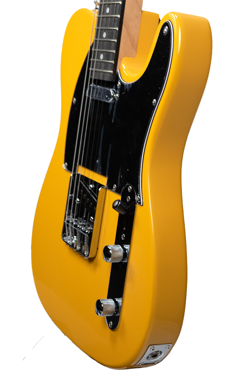 Guitarra corte Tel (Telcaster) eléctrica de aliso con acabado mate, diseñada para diestros. Diapasón de nogal, 6 cuerdas y 2 pastillas simples, ideal para diversos estilos musicales. Incluye combo de 15 watts, funda, tahalí, cable, púas y afinador digital. Calidad y versatilidad en un solo paquete.