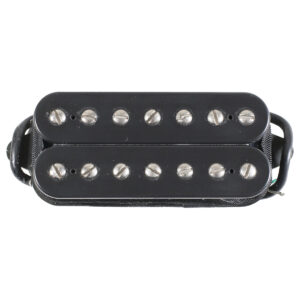 Humbucker pickup for 7-string electric guitar, Titan 7 model, position: neck but can also be used for bridge, wiring: 4 conductors, magnet: ceramic, standard spacing, resistance: 10.09 kilo-ohms, balanced combination of treble, mids and bass engineered to reproduce all three equally effectively, sensitive to changes in volume control and pick attack settings, for extremely expressive sound.