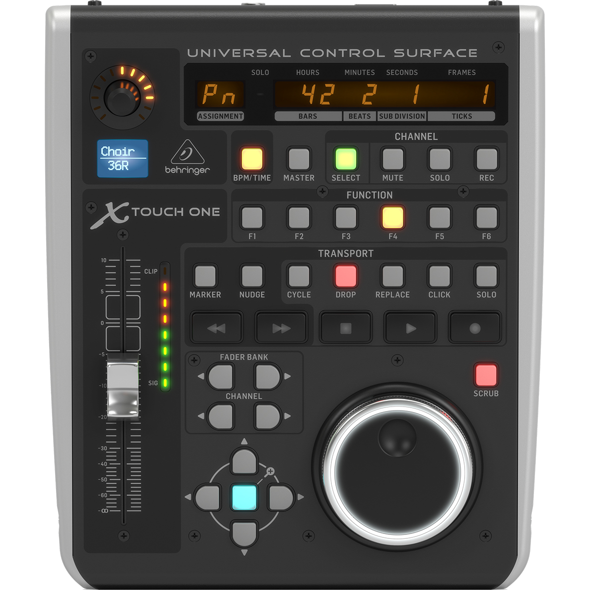Control Giratorio/Push con collar de LED: 1. Botones con LED retro iluminado: 34. Fader: 1 fader motorizado de 100 mm sensible al tacto. Rueda: 1 jog/shuttle. Footswitch: TS ¼”.