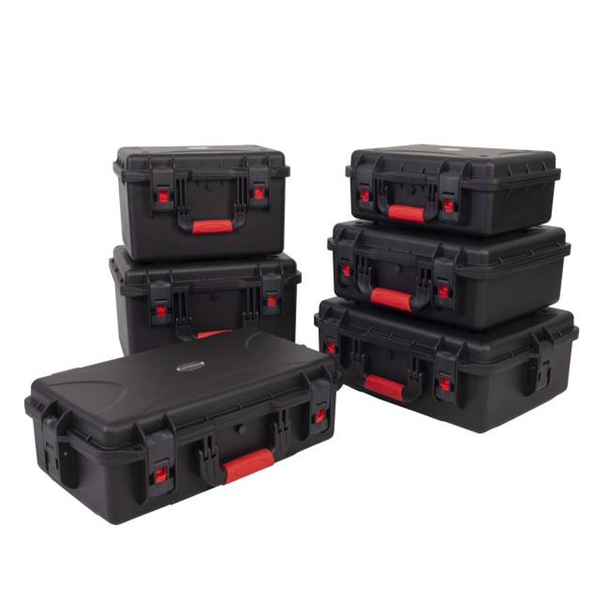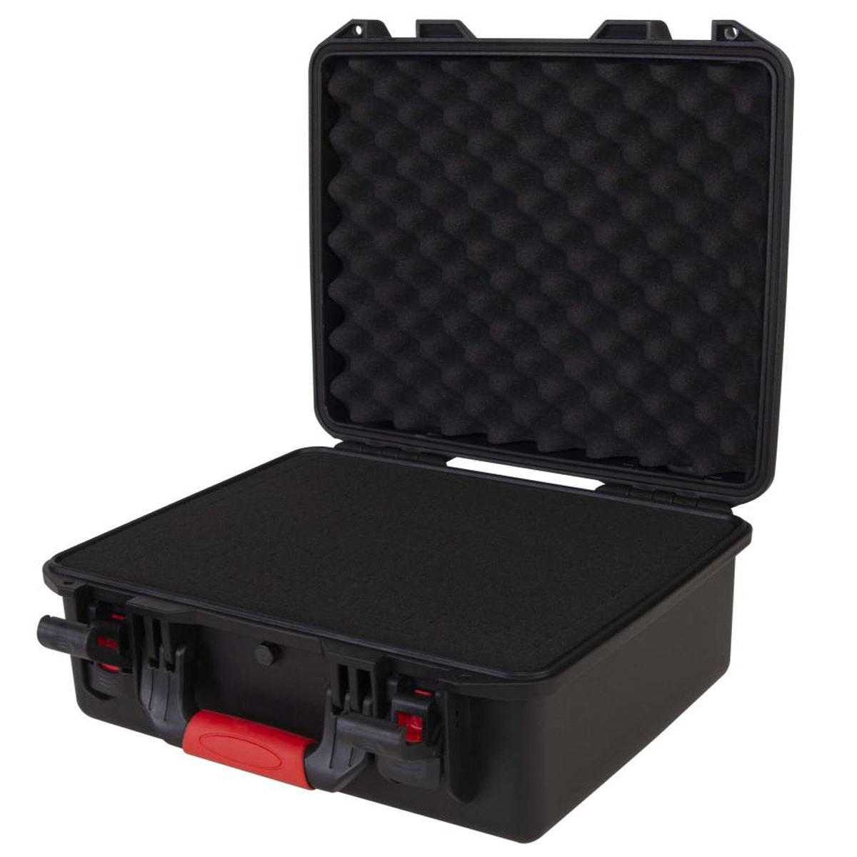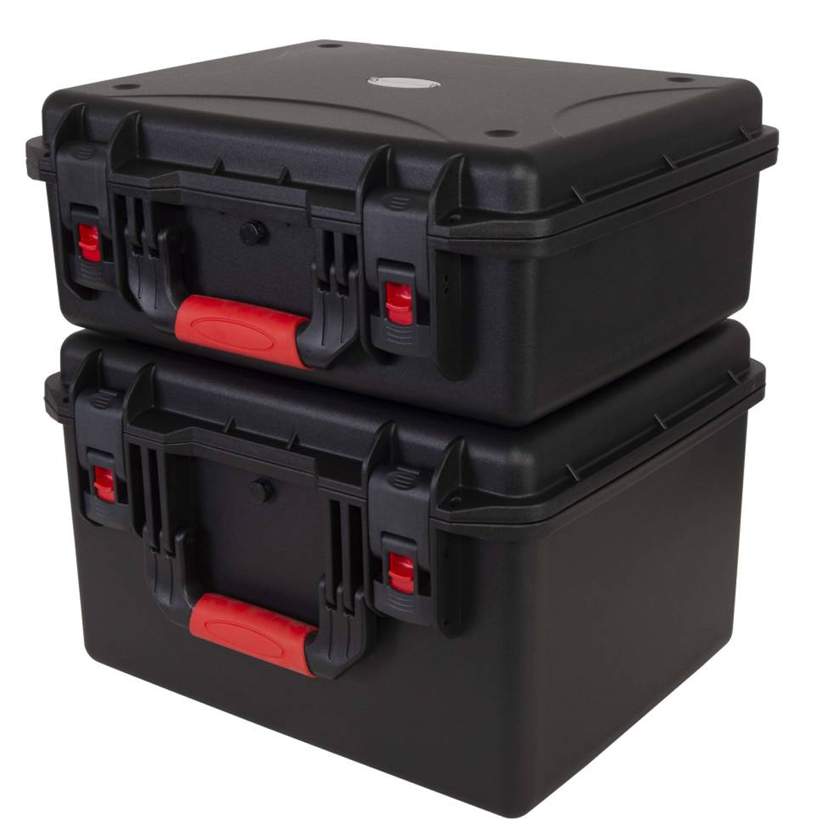 Estuche de polipropileno moldeado por inyección Dimensiones externas: Anchura 465 mm x Profundidad 400 mm x Altura 190 mm / Dimensiones internas: Anchura 430 mm x Profundidad 340 mm x Altura 175 (130 + 45) mm. Color negro.