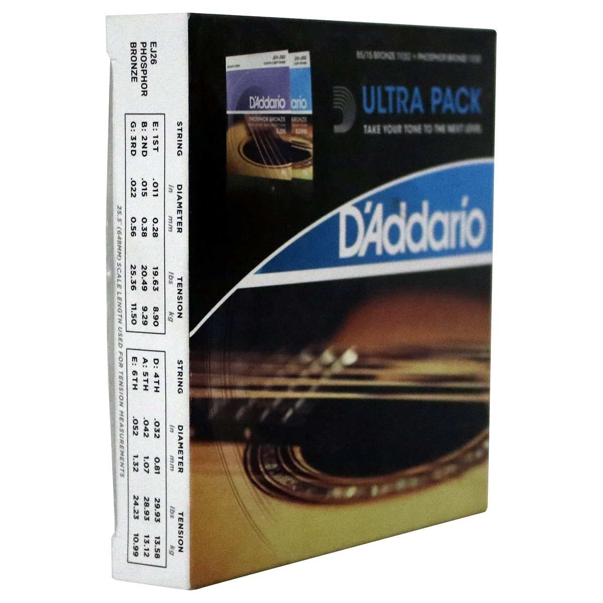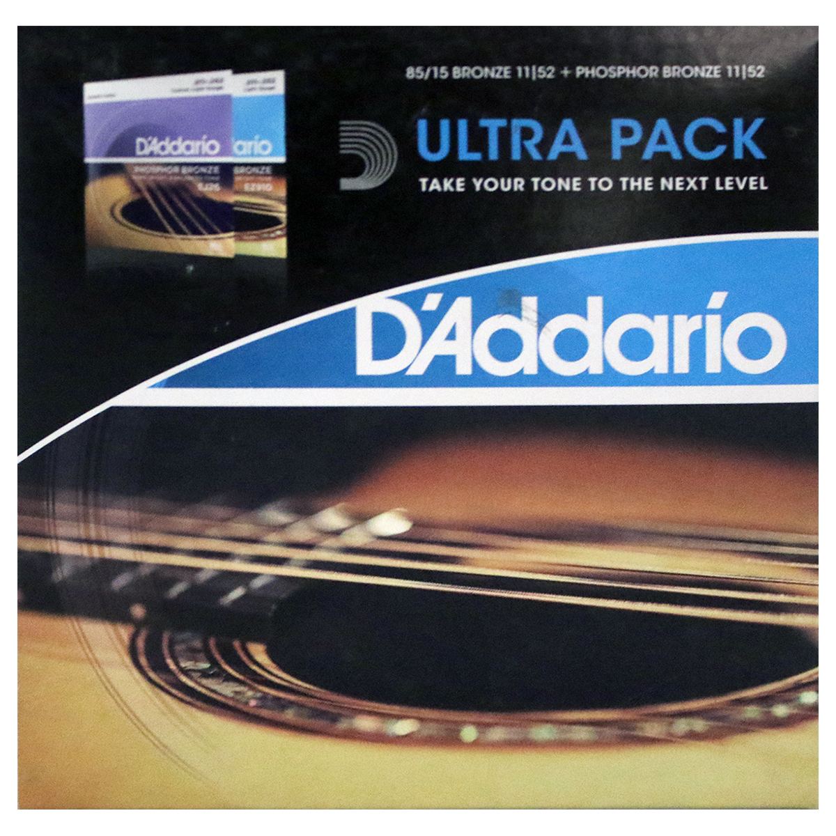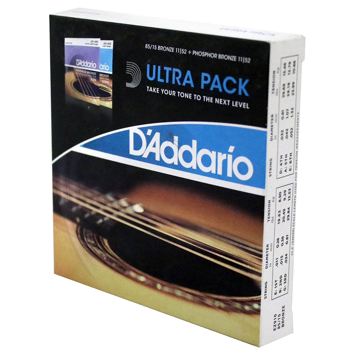 Entorchado de bronce 85/15: Esta aleación del material de entorchado consiste en 85% cobre y 15% estaño, lo que les da un sonido brillante pero profundo y un gran tacto al tocar, además de gran versatilidad. Con su tecnología de vanguardia, las cuerdas D’Addario son entorchadas a la perfección garantizando un sonido potente y estable además de una afinación duradera. Núcleo hexagonal de acero al alto carbón: Este material ofrece además de alta resistencia y durabilidad, un sonido cristalino con mucha proyección, sustain y gran conservación de la afinación. Tensión extra ligera: Ideal para principiantes o músicos que gustan de hacer bendings y un sonido más suave. Paquete ecológico y resistente a la corrosión para conservar la frescura de las cuerdas. Fabricadas en USA. Calibres: Acero liso .011, .015 y Entorchado en bronce .024, .032, .042, .052.