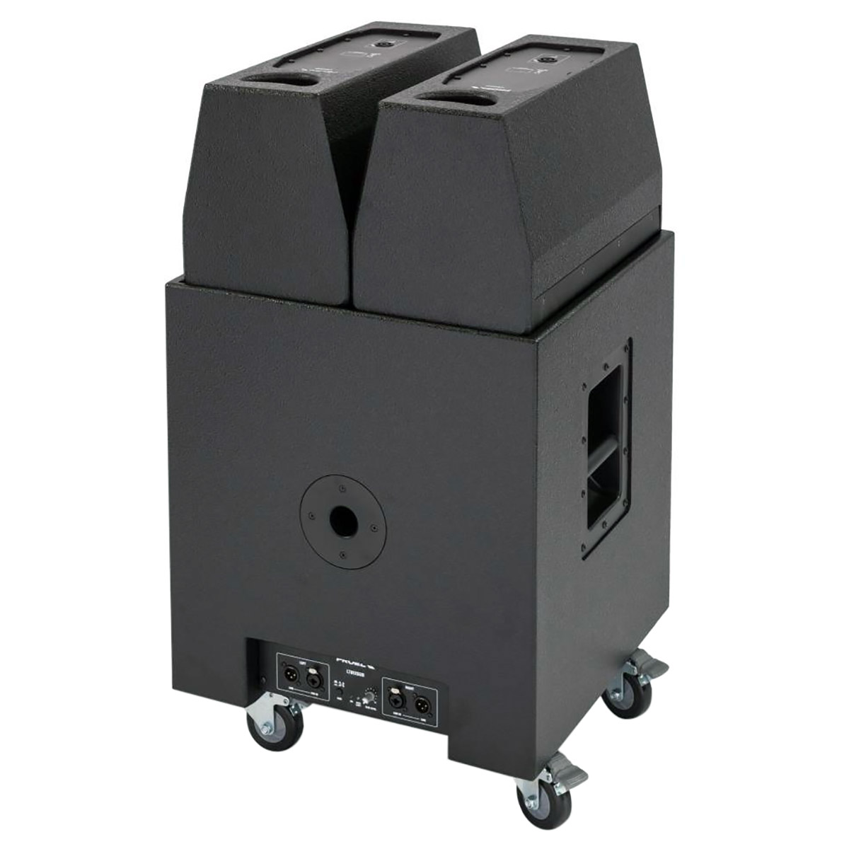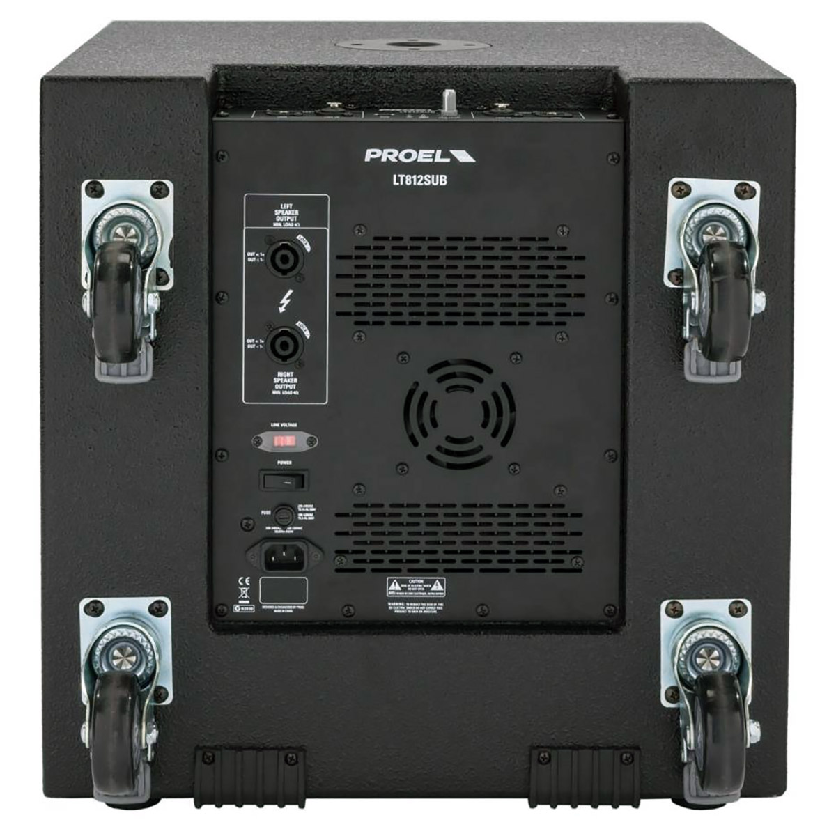 Tipo de sistema: Subwoofer ventilado. Dispositivo de baja frecuencia: Woofer de 12” con bobina móvil de 3″ pulgadas. Potencia pico total: 1600 watts. Potencia continua del amplificador: 400 watts clase D. Fuente de alimentación: SMPS. Procesamiento: Análogo. Respuesta de frecuencia: 45 Hz – 20 kHz. SPL máximo: 124 dB. Conectores: Entrada: 2 x Combo, Link: 2 x XLR macho; Salida: 2 x SPEAKON. Controles: Nivel de Sub y Ground Lift. Construcción: Madera contrachapada. Color del gabinete: Negro. Manijas: 2 a los lados. Montaje en poste: 1 por arriba. Fuente de alimentación: 230 VAC o 120 VAC 50/60 Hz con selector de voltaje de línea. Dimensiones: 475 x 462 x 610 mm. Peso: 34 kg.