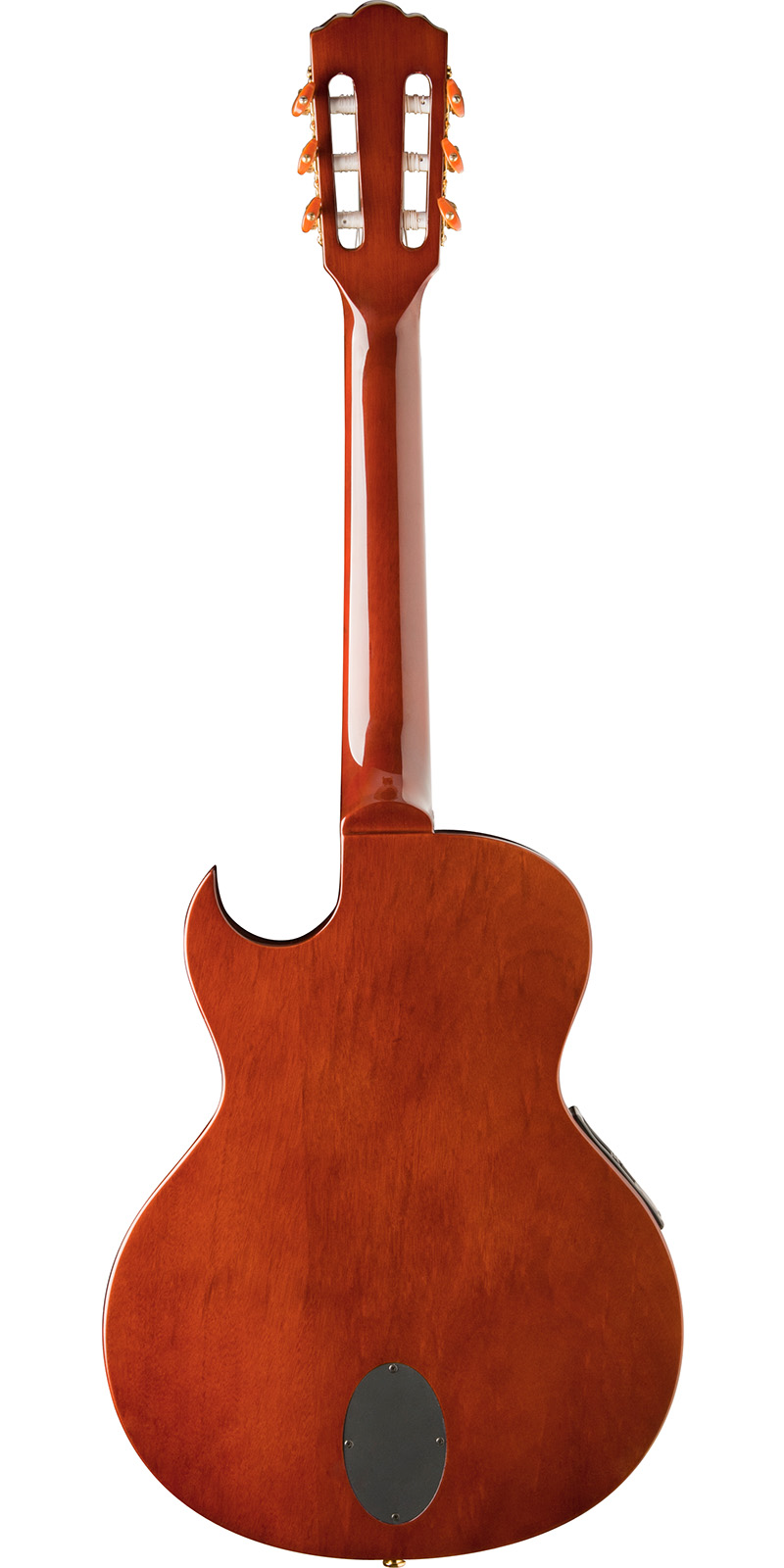 Guitarra electro acústica, single cutaway, forma clásica, thin jumbo, cuerpo deabeto sólido, aros y fondo de caoba, refuerzo de abeto sitka festoneado, brazo de caoba, alma de 2 vías, diapasón de palo de rosa, 21 trastes, cejuela de graphtech nubone de 43 mm de ancho, escala: 25.5, preamp: EQ de 4 bandas con afinador, puente de palo de rosa, maquinaria clásica dorada, cuerdas D’Addario EJ45 ProArte.