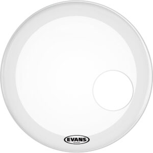 Parche resonante para bombo de 22” pulgadas, serie EMAD Reso, fabricado con unacapa de película de 7.5 milésimas de pulgada, agujero de 4” pulgadas libre de ruidos, anillo de espuma para amortiguación alrededor del agujero, hecho en USA.