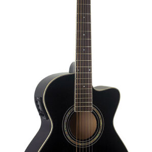 Guitarra electro acústica, tapa de basswood, aros y fondo de basswood, refuerzode abeto sitka sólido, single cutaway, brazo de caoba, escala: 25.5, diapasón ypuente de palo de rosa, cejuela de hueso, maquinaria diecast cromada, preamp: EQ4-T Pick-up System (incluye EQ y afinador), cuerdas D’Addario. Dimensiones del producto: 13 x 46 x 102 cm. Peso: 2.85 Kg.