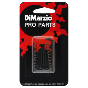 Kit de tornillos y resortes para ajustar la altura de las pastillas single-coil, así como fijarlas al contorno del espacio de la pastilla, terminado negro.