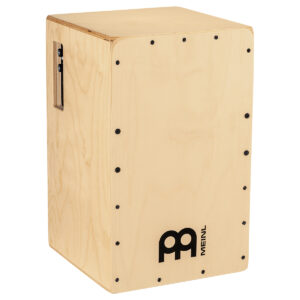 Cajon Palito Meinl, versión pequeña del String Cajon, cuerdas interiores que tocan la placa frontal para dar un efecto de chisporroteo sensible, sonido grave que funciona en varias aplicaciones musicales, superficie de toque de makah burl,caja de resonancia de roble de Siam, incluye llave Allen.