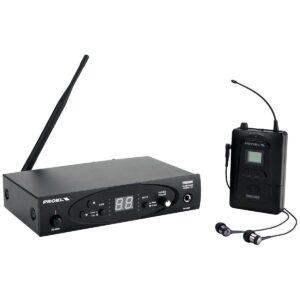 Micrófono inalámbrico Proel. Modelo: RM300L. Banda de difusión: 750 – 865 MHz UHF High Band. Modulación: FM (FE3). Rango dinámico: 100 dB. Conectores: Jack de 1/4” pulgada. Dimensiones del receptor: 190 x 95 x 45 mm. Peso del receptor: 0.55Kg. Rango de frecuencia: 176 – 240 MHz. Alimentación: Una batería de 9V. Micrófono: LCM-1 Lavalier.
