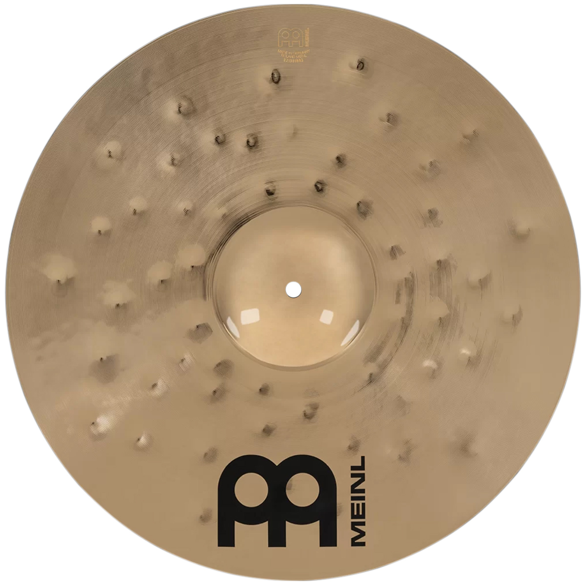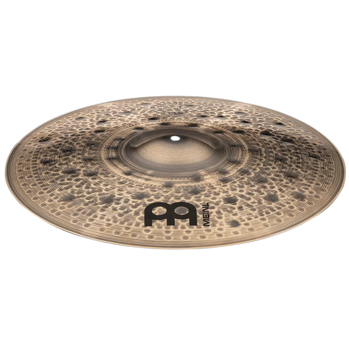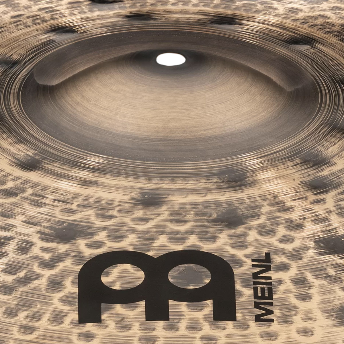 Platillo Meinl Crash extrafino personalizado de aleación pura de 18” diseño de bronce ahumado y una parte inferior brillante, peso delgado y un martilleo extra grande en todo el arco, peso más delgado, y martillado adicional de calidez y tono oscuro.